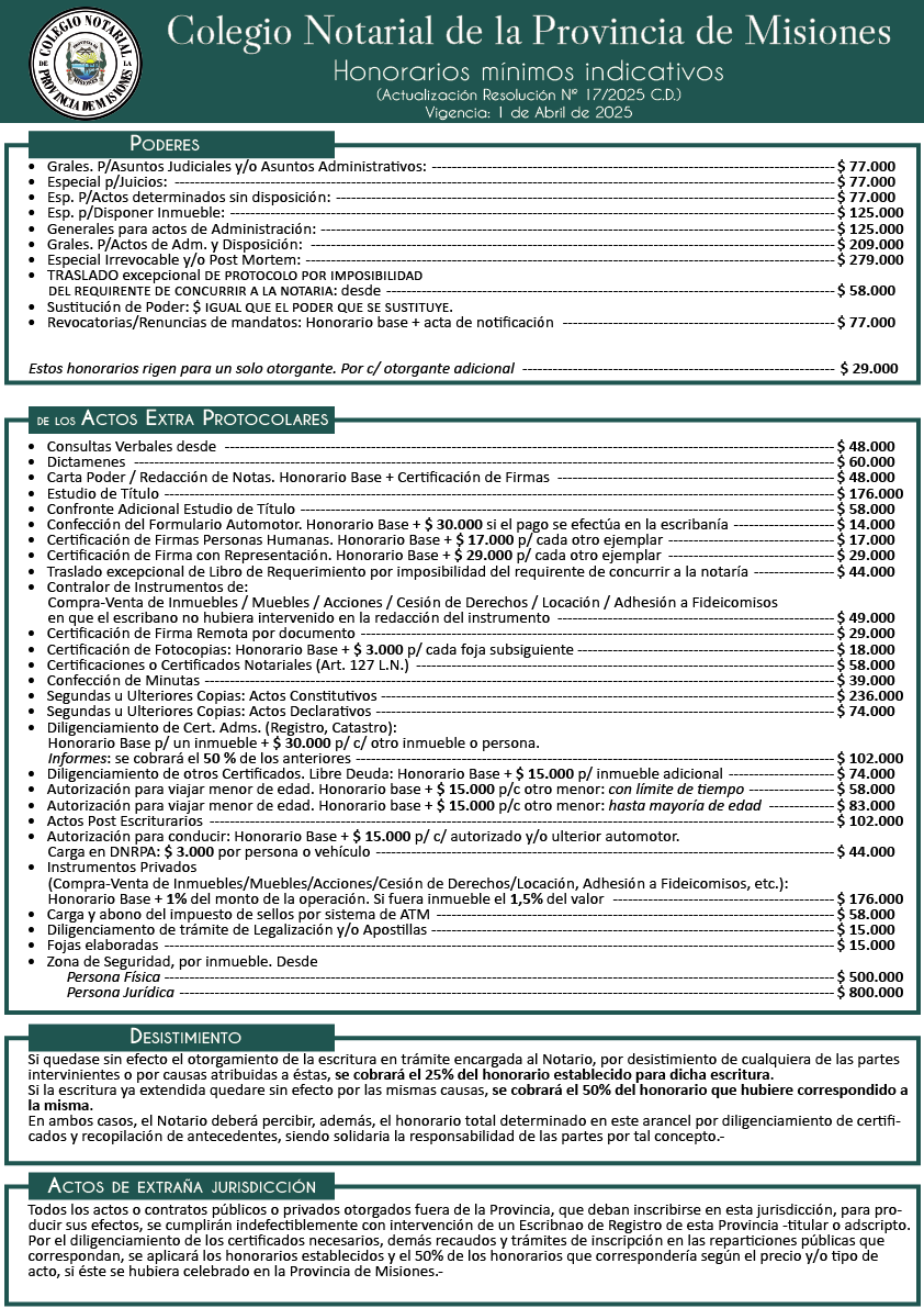 Titular: COLEGIO NOTARIAL DE LA PROVINCIA DE MISIONES